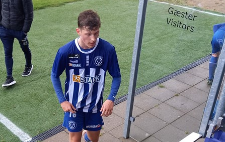 Simon Fejerskov spiller lørdag sin kamp nr. 50 på førsteholdet. På billedet er han på vej ud af banen efter sin debut i en 3. divisionskamp i Slagelse i maj 2022. I samme kamp debuterede også Matias Sjøbeck.